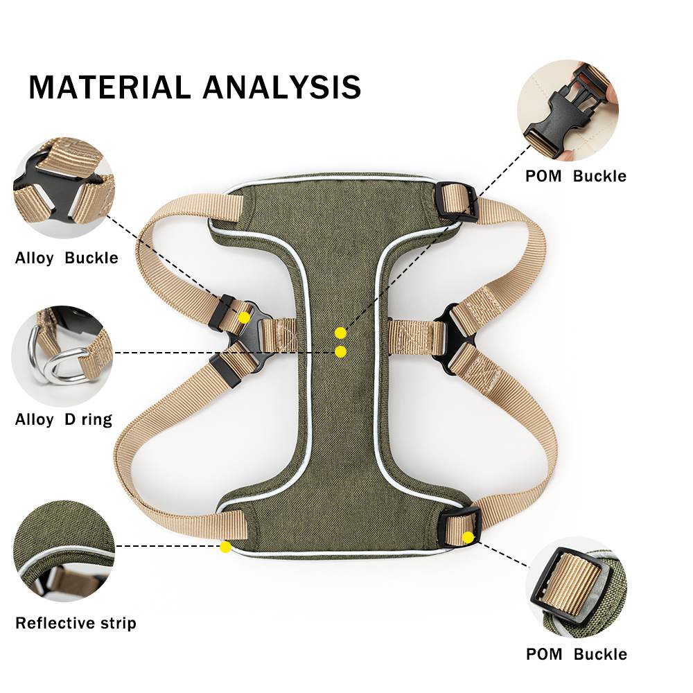 5. Precise fit, durable appearance: Adjustable straps on both sides allow for customization to fit different pet sizes; three stable color options – gray, army green, and beige – are stain-resistant and suitable for various pet styles.